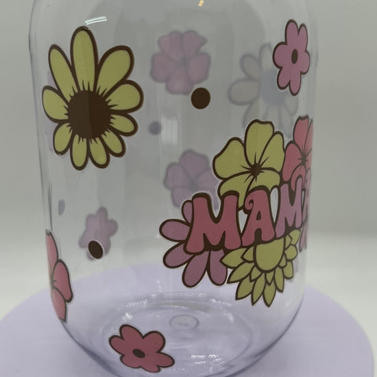 Mama Retro Floral, 24oz Plastic Mason Jar Cup
